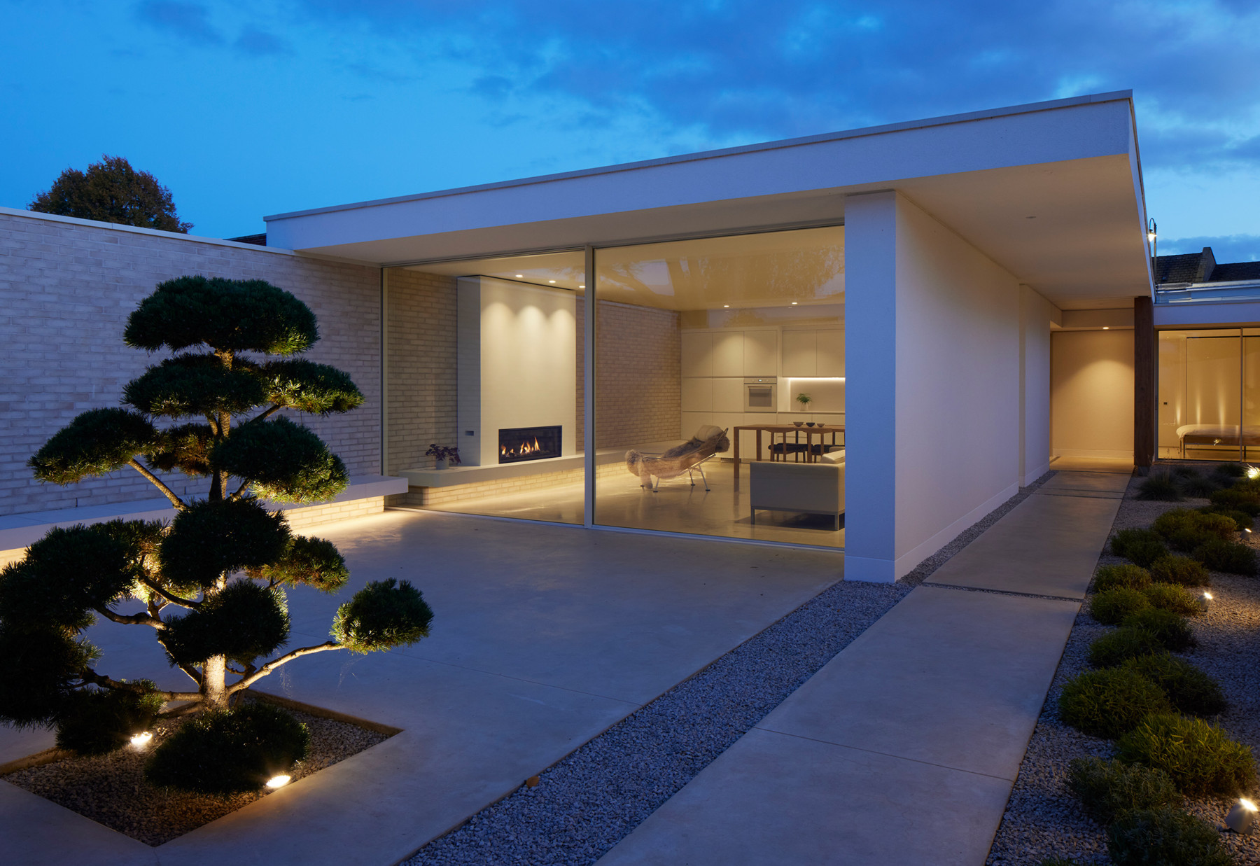 At both ends of the house there are private courtyards. These have several functions: they provide privacy and protection from overlooking; they create sheltered outdoor space, and through fully glazed facades, the courtyards are experienced as an extension of the interiors.