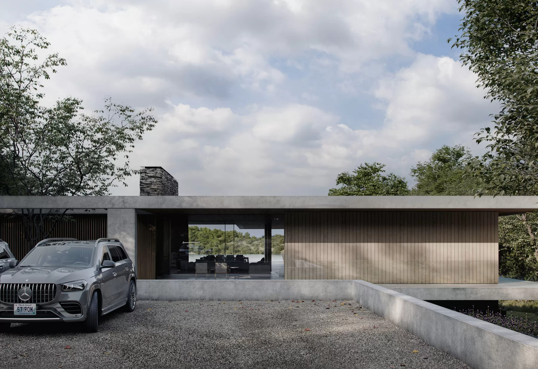 As such, the house was designed with all the main living spaces on one single-storey, with wide open areas and inter-connecting rooms. The house sits on a masonry plinth which contains service function such as plant, storage and gym. The level change across the site is utilised to get external level access for lawnmowers etc. There is a walkway around the house to make level access easy around the proposed house.