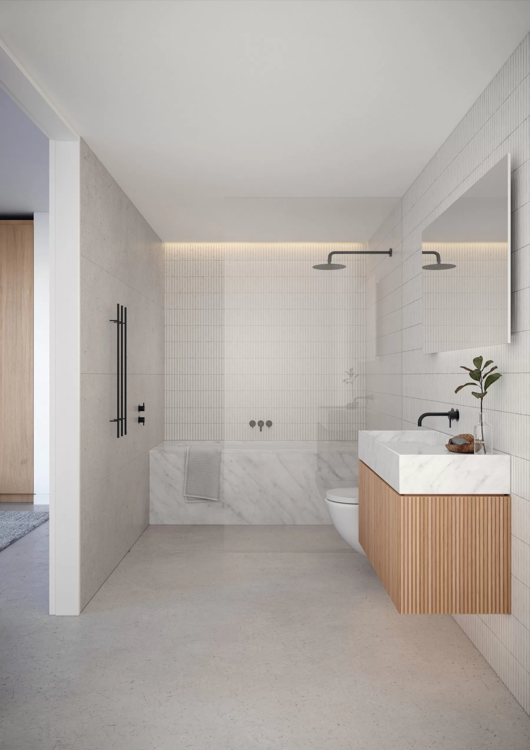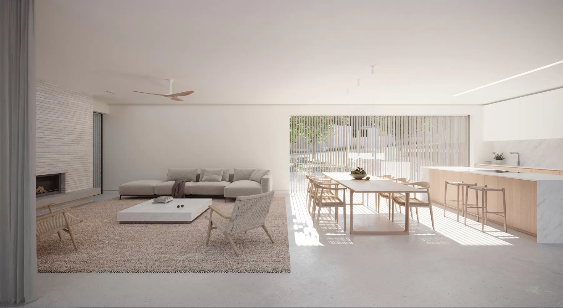 The compact house is very similar in its design language, although it contains 4 bedrooms, two which face the courtyard, and two that face the street. As this house has a shorter elevation it is deeper and has a more generous outdoor living space.