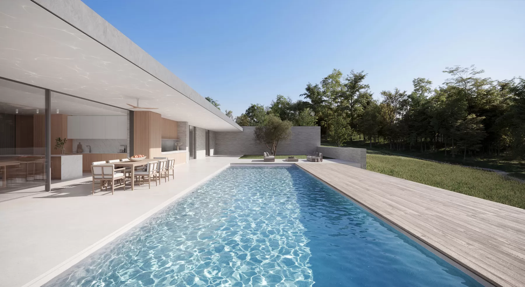 The third house type is a small one-bedroom guest house, with a smaller plunge pool. Again, they share a similar design language.