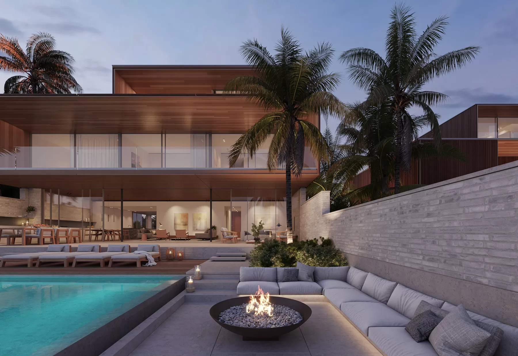 A plinth was designed that is the essential platform for living. Within the plinth, we set a fire pit and a large pool with an infinity edge that blurs the boundary between the man-made and the ocean.