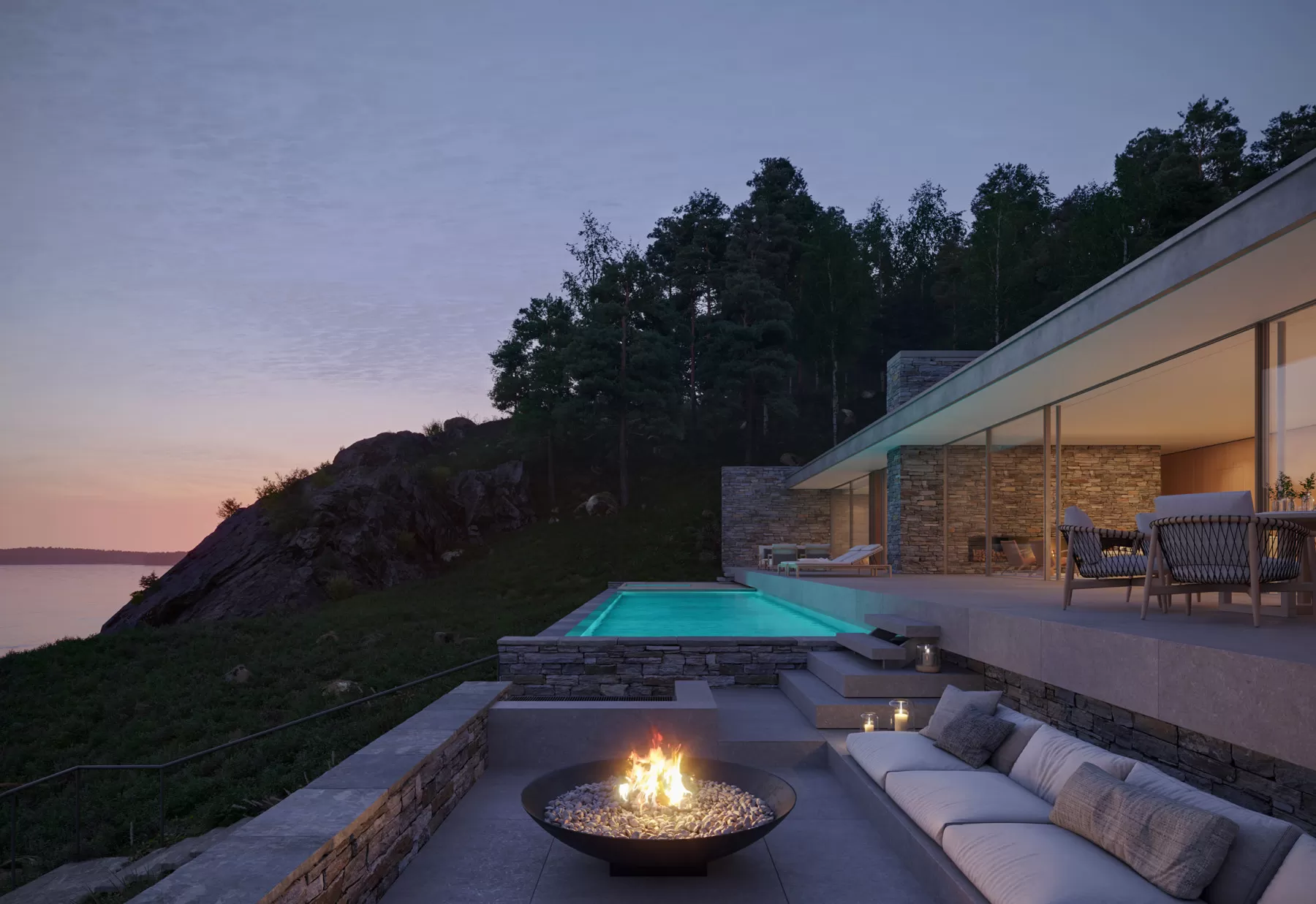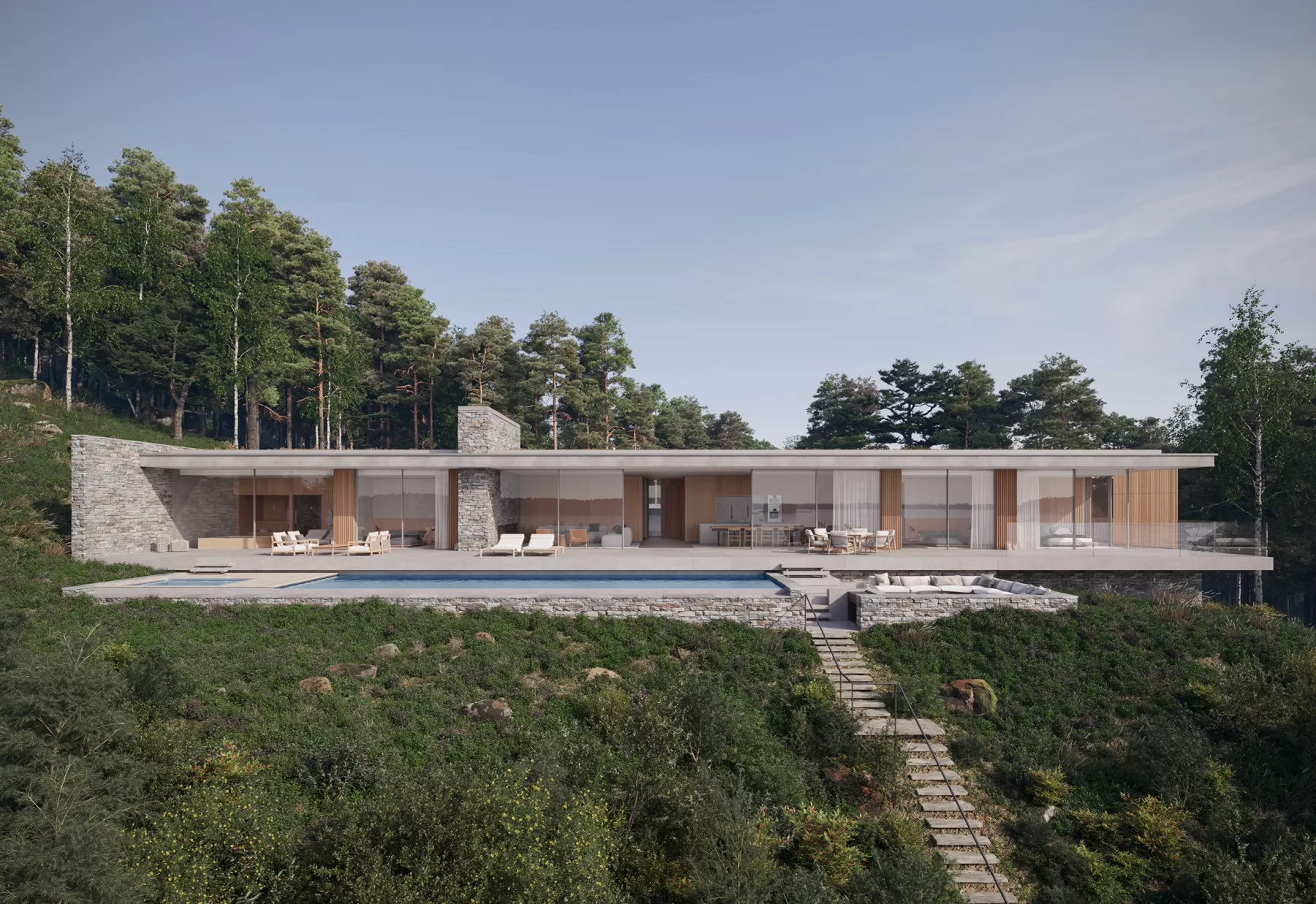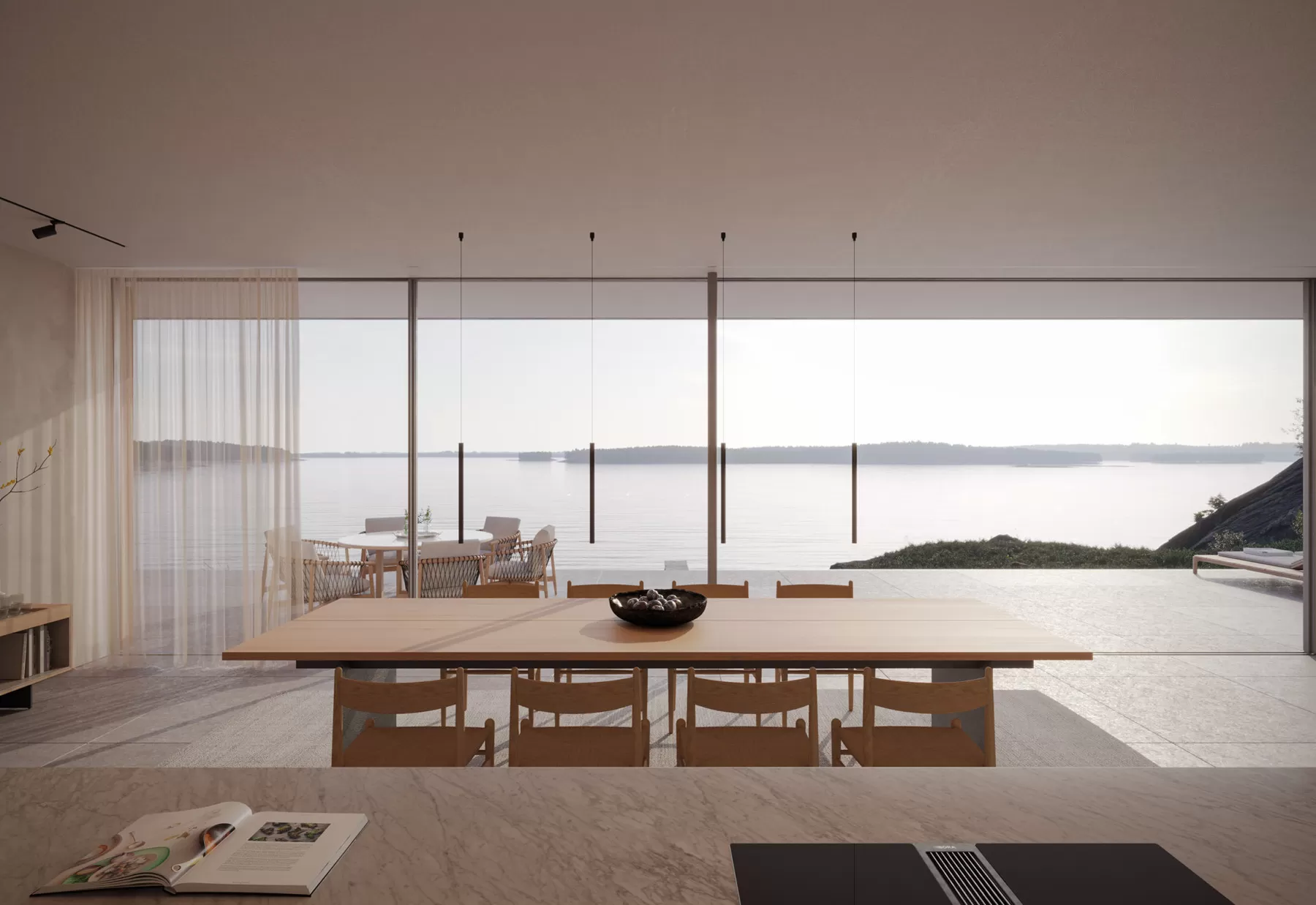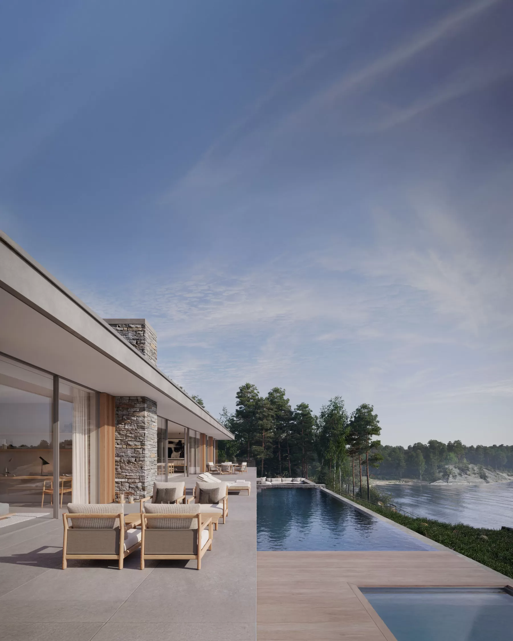 This stunning contemporary home, nestled on a breathtaking site overlooking the Stockholm archipelago, was originally commissioned by a long-standing developer client. We had the privilege of working with him previously, and this project was a personal retreat; a home designed for his own use, embodying the full expression of our shared design ethos.