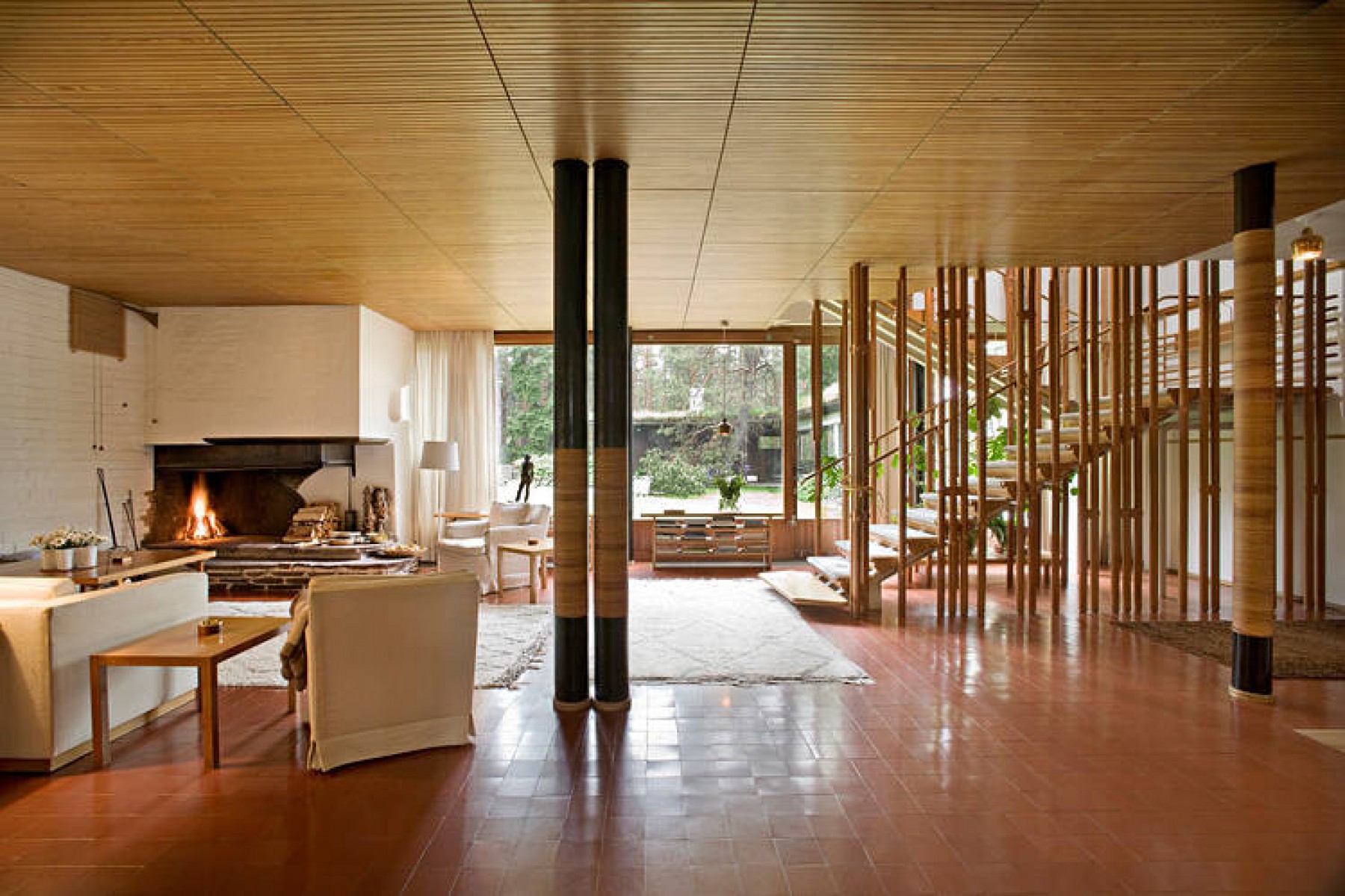 Villa Mairea is a significant house designed by Alvar Aalto, that marks a transition between traditional and modern architecture in Finland. It is inspired by Falling Water, and Aalto was so in awe of it, that he tried to persuade the clients to move the house and build it over a stream! Villa Mairea also represents the softer Modernism, both in form and materials. The surrounding birch forest is echoed in columns and screens throughout the house.